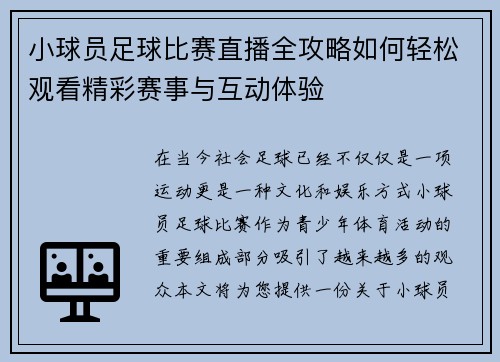 小球员足球比赛直播全攻略如何轻松观看精彩赛事与互动体验